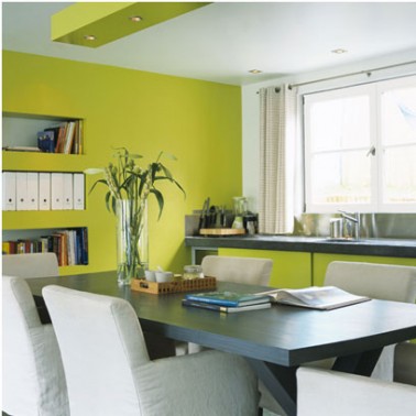 Cuisine Peinture Verte Et Blanche. On le recommande pour une décoration moderne. Peinture cuisine verte, plan de travail blanc et accents métalliques.